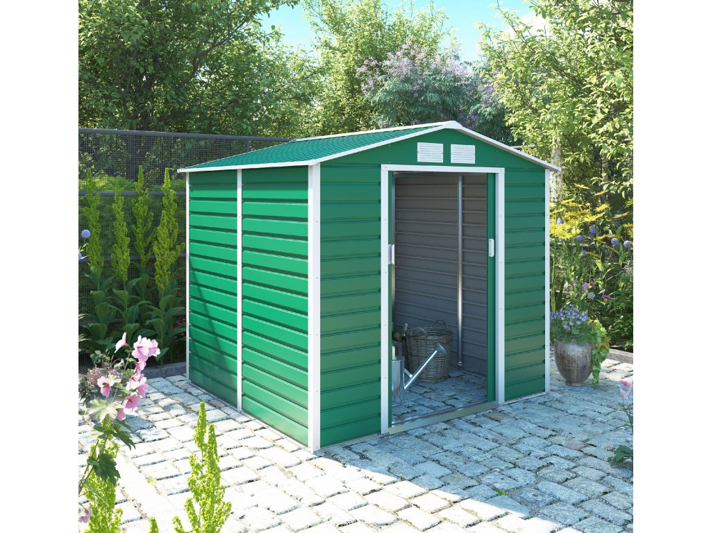 Na pevný pozinkovaný rám primontujete oceľový, pozinkovaný plech s práškovým nástrekom, ktorý je odolný voči zlému počasiu. Súčasťou balenia sú dverné úchyty, vďaka ktorým domček ľahko zaistíte proti nezvaným hosťom.