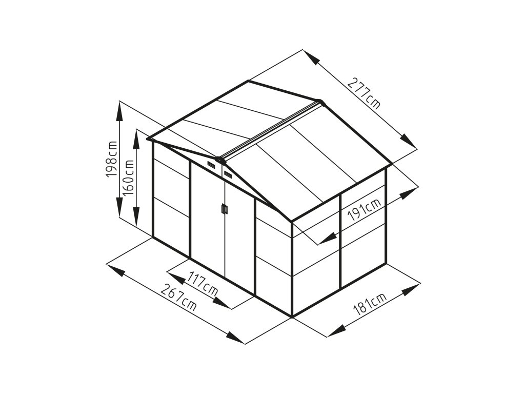 - Rozmery vonkajšie (Š x V x H): 277 x 198 x 191 cm